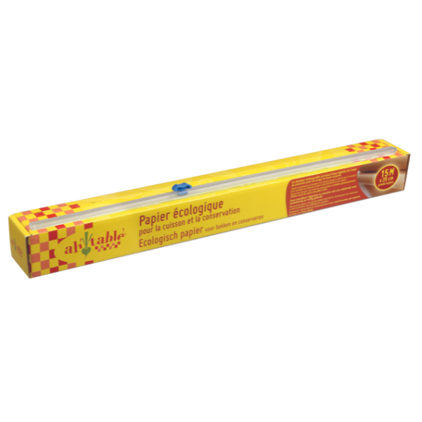 Le papier écologique Ah!Table! est polyvalent et remplace le papier sulfurisé, film alimentaire et papier d'aluminium. Recharge à utiliser seule ou dans un dévidoir. Microporeux et résistant à la chaleur jusqu'à 220°C, il s'utilise comme papier cuisson. Il protège également les aliments et les arômes du dessèchement, fait barrière aux odeurs et aux graisses.